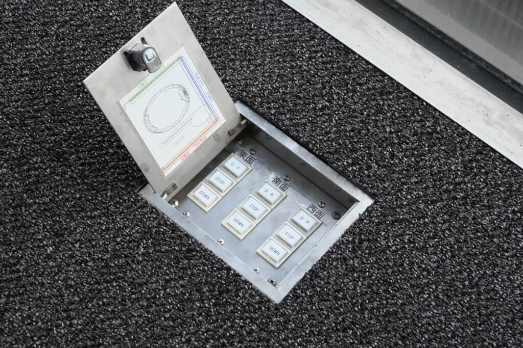 Push-buttons on each side allow for linked operation, while each of the three sides can also be raised or lowered individually using the switches on the control panel.