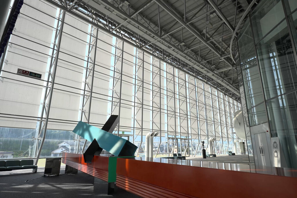 A total of 58 roller blinds covering a total area of over 2,000 ㎡ were installed on the three sides of the entrance (east, west, and south). Despite the large scale of 17 m in height, a flat design was achieved, eliminating any sagging or wrinkles in the fabric.